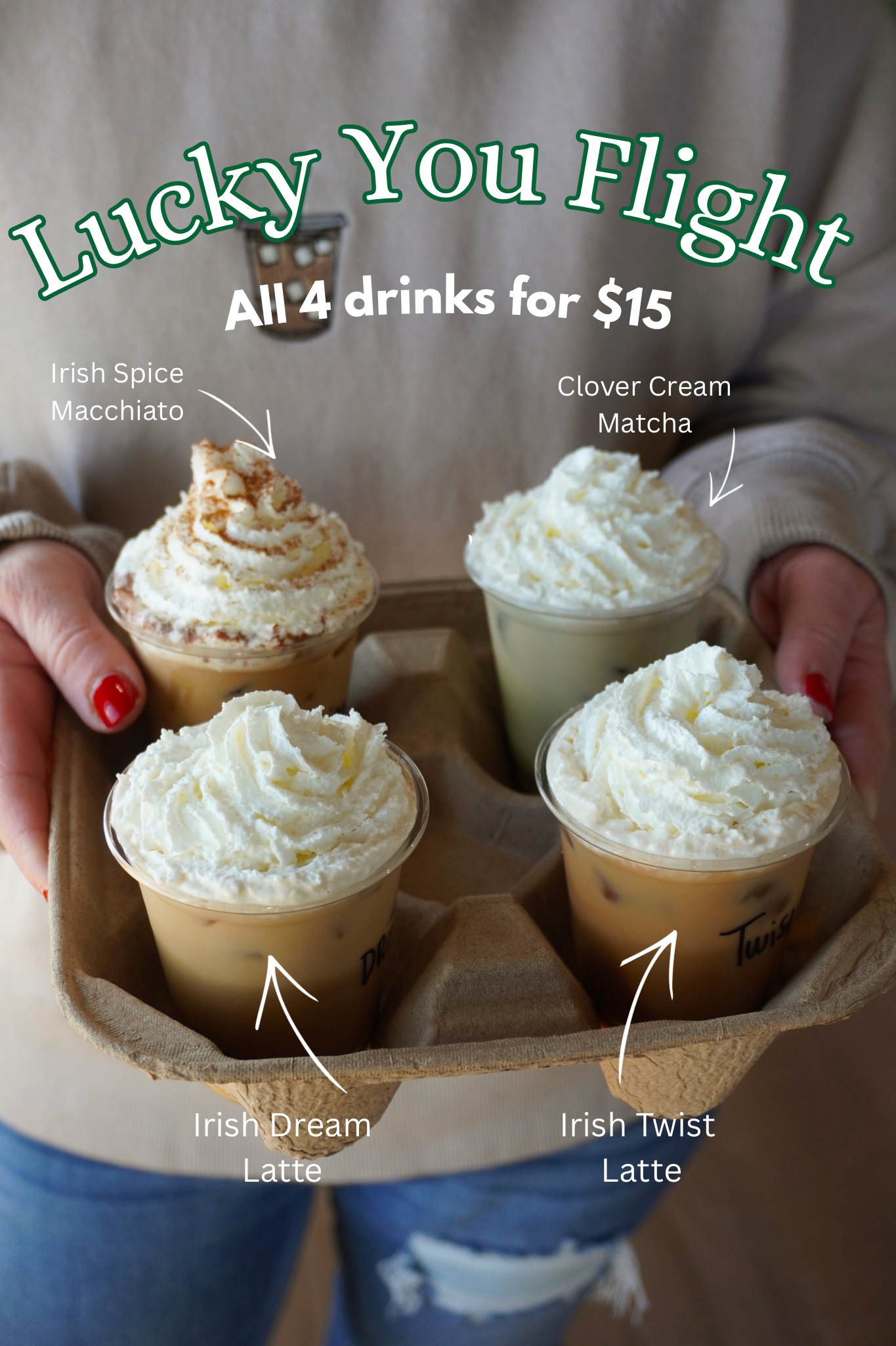 Try our limited-time Lucky You Flight featuring four St. Patrick’s inspired favorites — perfect for sharing with a friend or treating yourself.