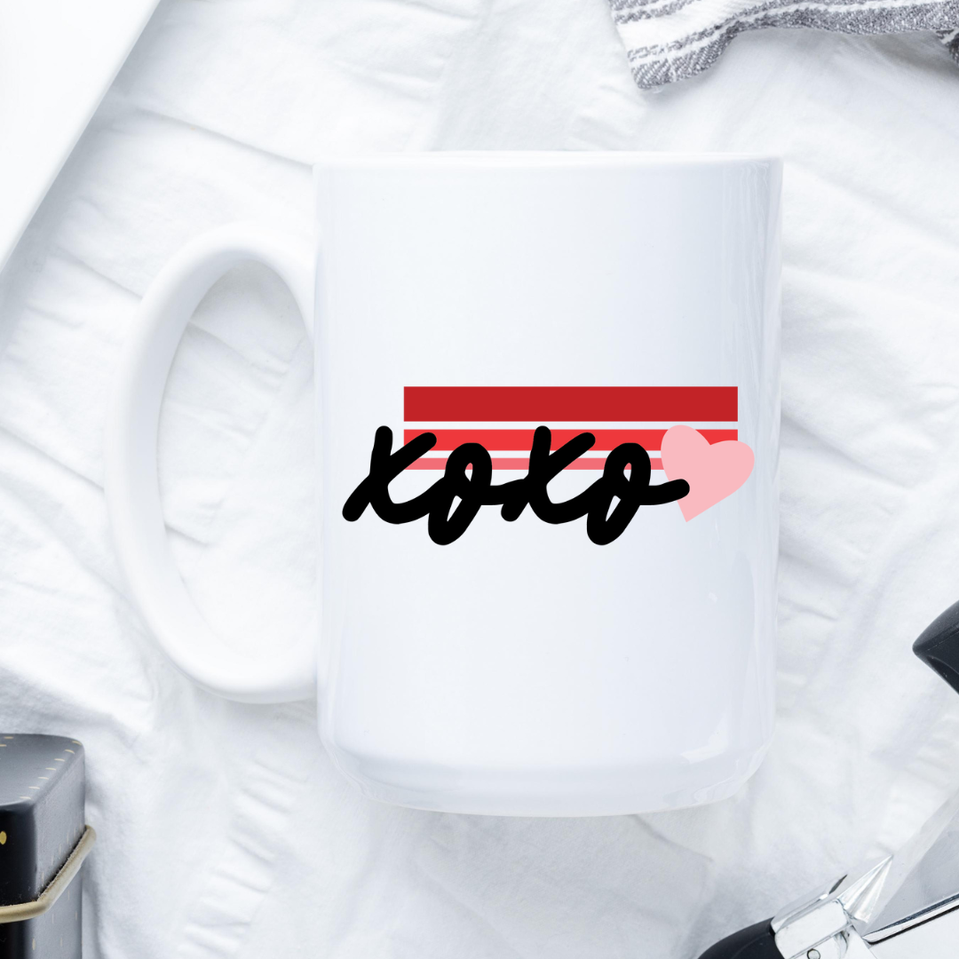 15 oz XOXO Ceramic Coffee Mug, Valentines Coffee Mug