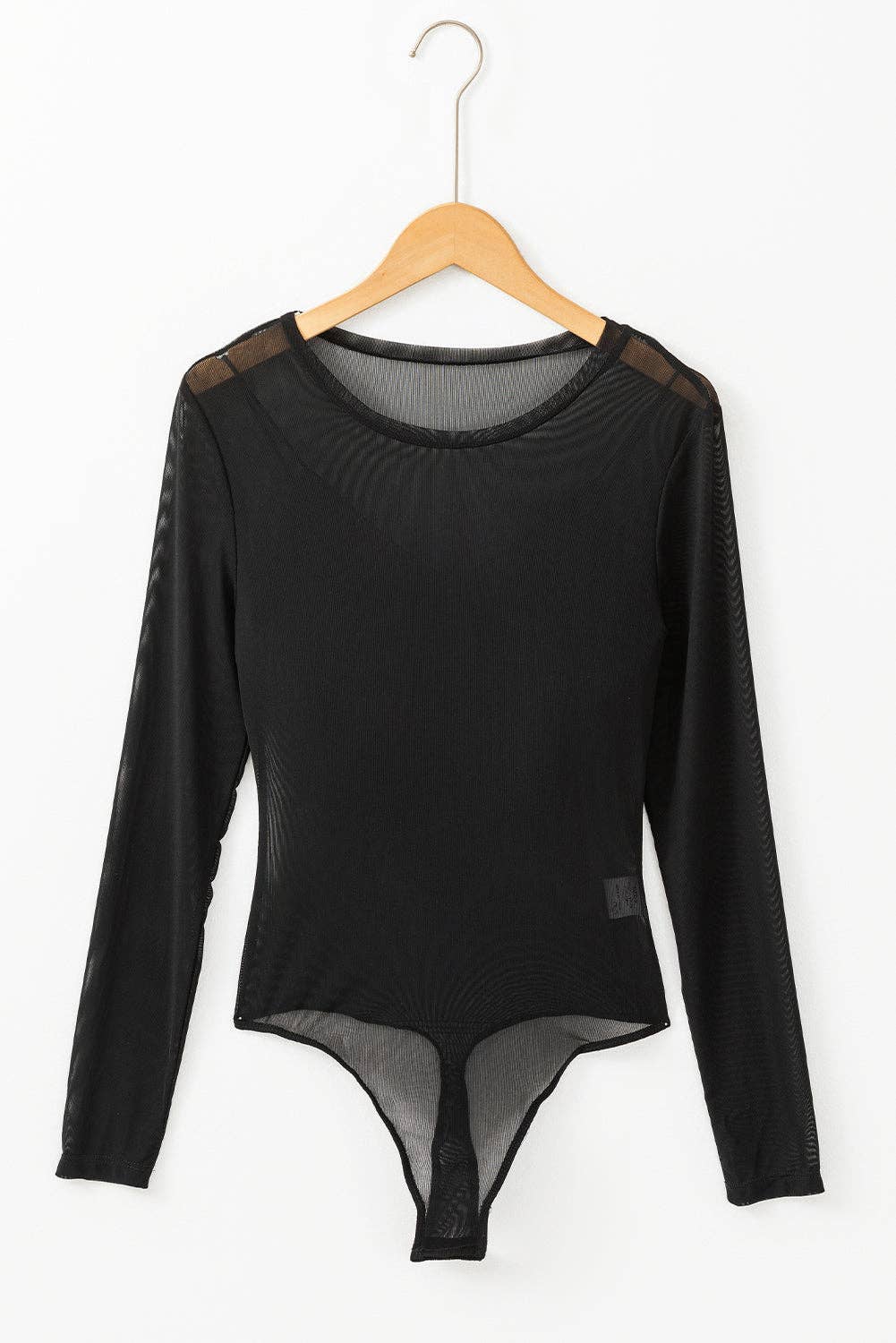 Black Mesh Long Sleeve Slim Fit Bodysuit