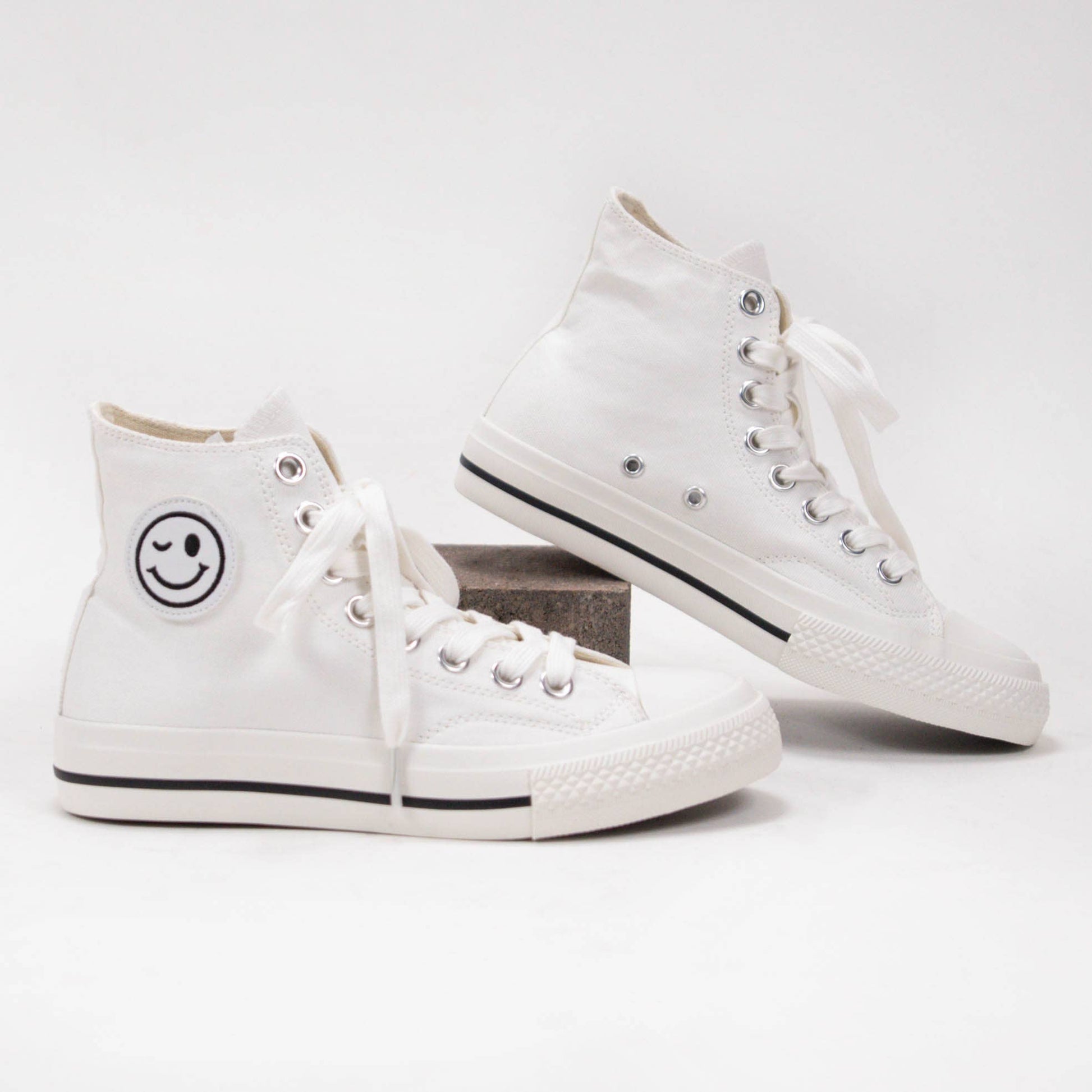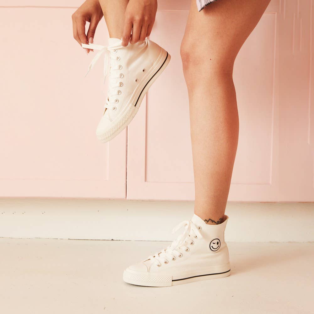 SMILEY PATCH HIGH TOP CANVAS SNEAKERS