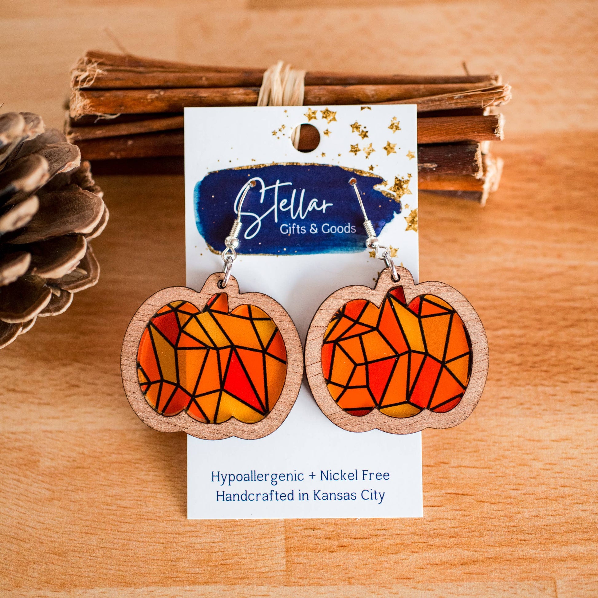 Fall Stained Glass Pumpkin Inset Dangles - Fall Earrings