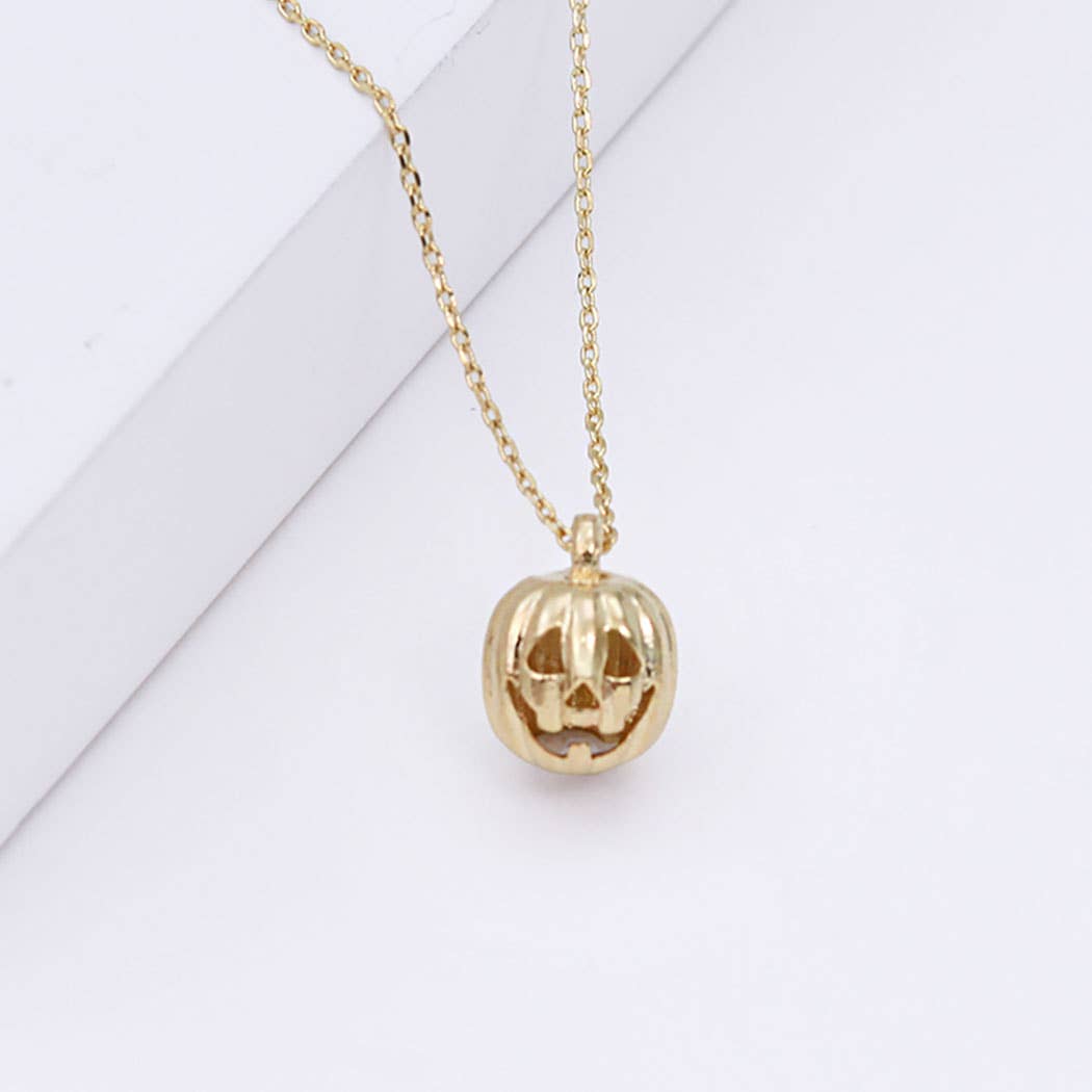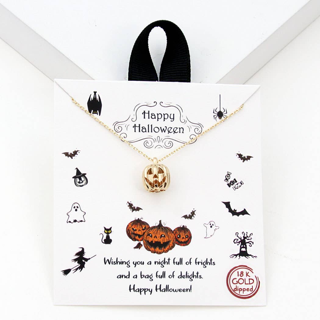 Gold-Dipped 3D Jack-O-Lantern Charm Necklace