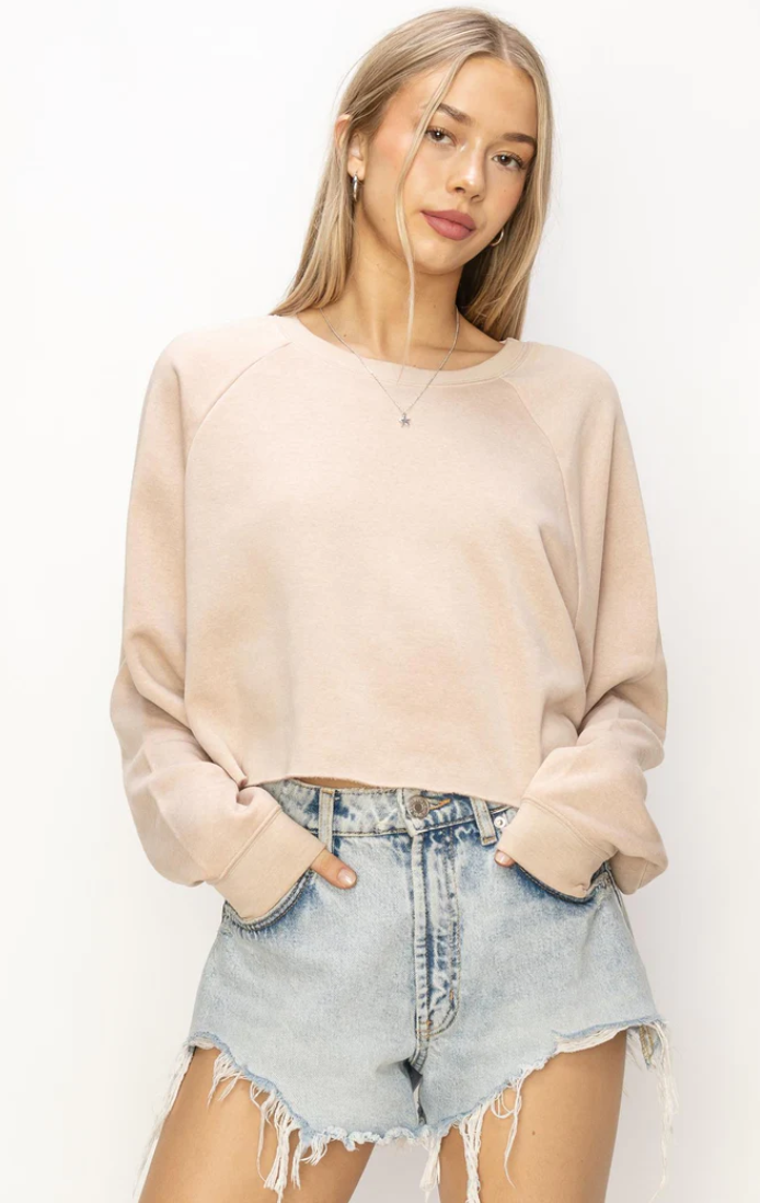 LAID BACK CROP SWEATSHIRT TAN